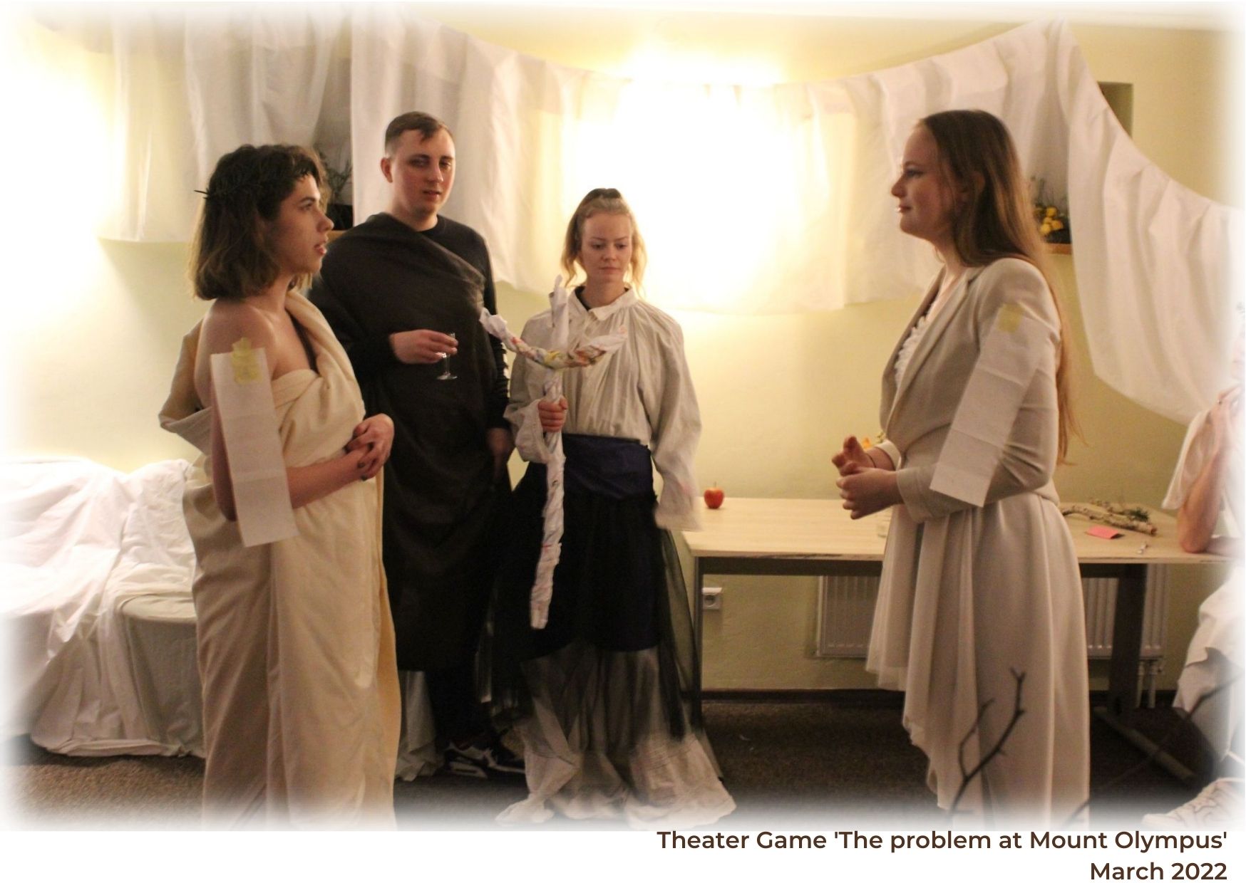 The theater game was conducted during the youth exchange 2 Art or not 2 Art. The participants played the roles of Greek gods who lived on Mount Olympus.