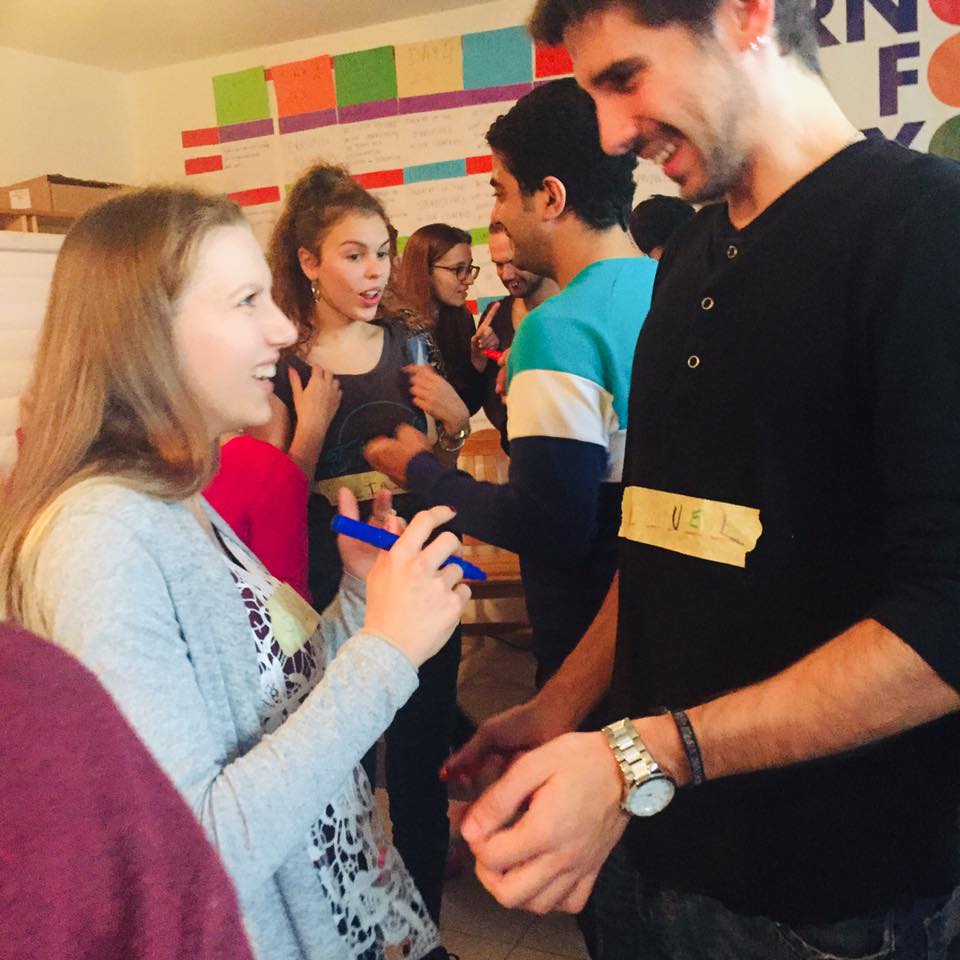 W końcu odbyły się pierwsze zajęcia i mogliśmy poznać pozostałych uczestników z Włoch, Portugalii, Czech i Rumunii. By dyskutować i wymieniać się doświadczeniem na głębszym poziomie dobrze jest najpierw poznać imiona naszych rozmówców, dowiedzieć się czym się zajmują i skąd pochodzą. To właśnie było pierwsze zadanie naszej dopiero powstającej grupy.
